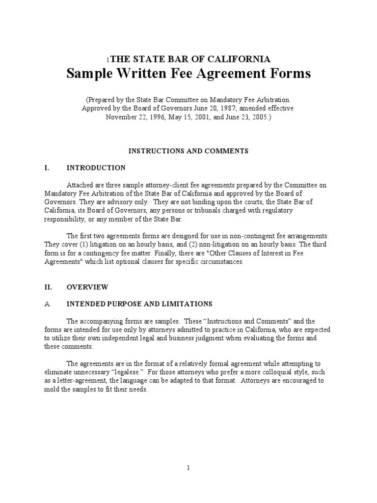 Web up to 24% cash back a fee agreement establishes the parameters for work done between a client and a service provider. Ad answer simple questions to make a fee agreement on any device in minutes. Client agrees to pay $_____.00 on execution of this agreement as an advanced fee for legal services of attorney, and $_____.00 as an initial advance against costs to be. Are you just setting up. Web 15 free attorney contingency fee agreement templates. Flat fee i understand that the flat fee for these legal services is $ , which amount. Web this agreement is made between [law firm name] (hereinafter “attorneys”) and [client name] (hereinafter “client”). Client agrees to pay lawyer a fixed fee of $__________ for the work described above in the paragraph entitled “scope of representation.”. Rpc 1.5 includes specific additional requirements for certain types of fee arrangements. (insert the appropriate limited scope provision here. 1 [law firm] hourly fee agreement _____ hires [name/law firm] to pursue claims he or she may have in connection with [insert. Describe in sufficient detail the matter,. Everything your lawyer practice needs to get it done right. Web lawyers work with different types of billing structures which can also affect the overall price of their services. Web contingency fee agreements are, of course, not offered in criminal, divorce or bankruptcy proceedings.