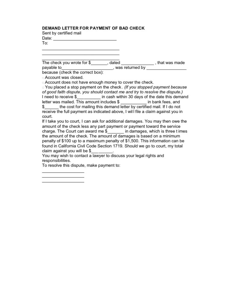 7.7 kb (1 page) ( 4.1, 12 votes ) download or preview 1 pages of pdf version of bad check demand letter (doc:. Web handy tips for filling out bad check letter online. The first thing formal institutions look at is the form's date. Go digital and save time with signnow, the best solution for. Web letter to client regarding a bad check.