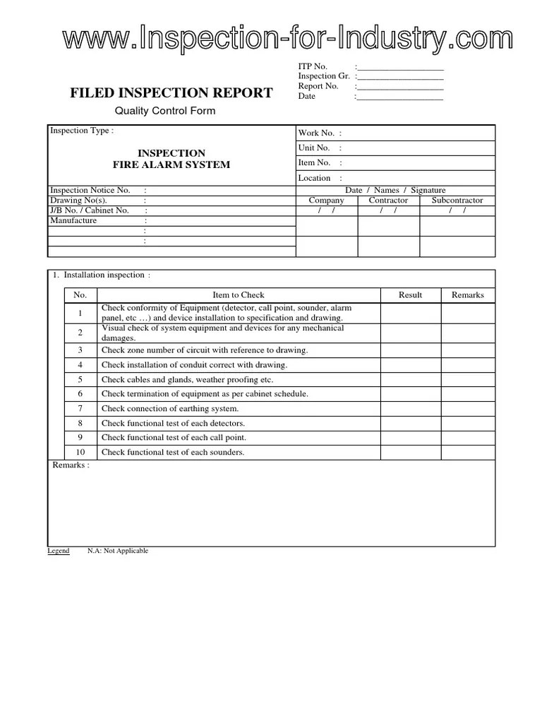 Follow this fire alarm inspection report template to ensure that all fire alarms are functioning properly. Web fire alarm and life safety system inspection report. Web a fire alarm system inspection form is a form that is used by building contractors to document any necessary repairs on fire alarm systems that have been installed in. You can customize, access and download a fire inspection. Nfpa templates for commercial fire inspections and services.