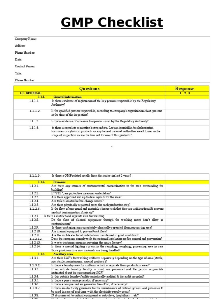 Web this template is designed to help manufacturers stay compliant with gmp regulations, as outlined by the world health organization (who). Use free digital gmp checklist templates. Your online store for document templates for quality management system & good engineering practices. Get notified about routine checks using automatic notifications; Forms belongs to quality assurance and validation standard operating procedures (sop) which can be customized to meet your specific needs.