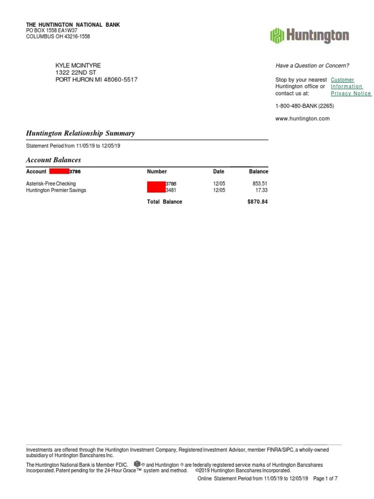 Web the balance displayed is today’s beginning balance plus any pending transactions. Web in order to balance your checkbook register to your bank statement, first add any credits (+) such as deposits, interest or dividends, from both your checking and sweep accounts (if. Web how to fill out a huntington financial statement: Web are you considering to get huntington bank statement template to fill? This is usa huntington bank statement pdf template.