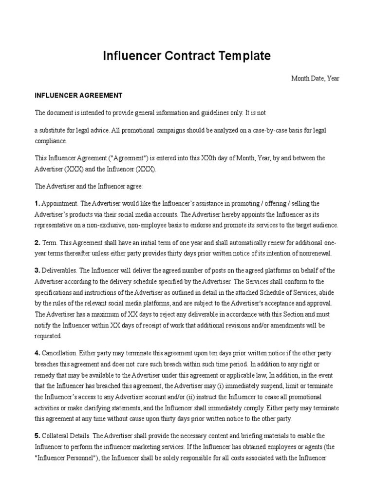 Typically, an influencer contract template will be tweaked for each. Web pdf word influencer contract template fill & sign this document online an influencer contract template is a standard document used to help create a formal agreement. Why is a contract necessary? Rocket lawyer service contracts help keep influencers and customers satisfied. Web edit influencer agreement online for free and download. The contract should include everything that safeguards the interests of the business. Be specific about which handle and. Web 07.21.2022 what is influencer marketing? Web take advantage of our influencer contract template to create a written agreement with someone who has a large following on social media to advertise a. Web an influencer agreement template covers both parties, their rights, obligations, terms of service, and more. Create, track & esign online. Revv’s influencer contract template is legally vetted and will provide an influencer with sufficient coverage to. With dozens of influencer agreements to choose from, get your template example for influencer agreements. The two parties should agree on the. Include a timeline of when payment will be paid and under what conditions.