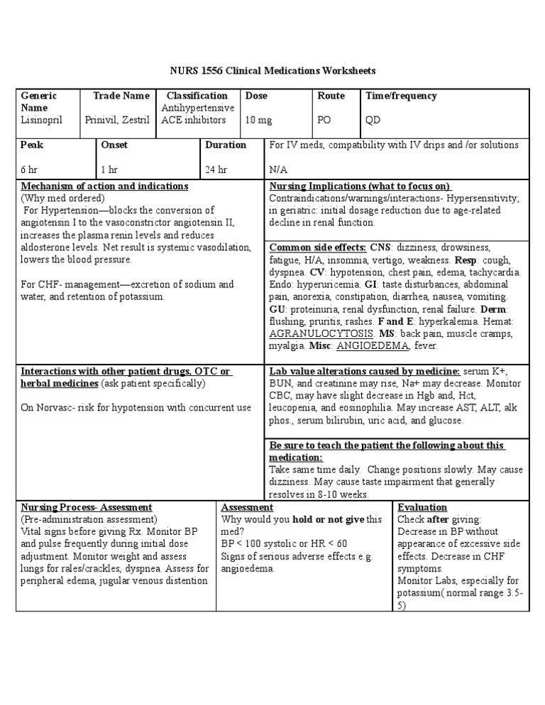 Abilify ati medication template form; Lisinopril, carvedilol, furosemide, potassium chloride, aspirin,dobutamine, milrinone this question hasn't been solved yet ask an expert Erectile dysfunction, impaired renal function. Medication naina phuyel student name_ lisinopril medication_ review Proctored remediation for ati fundamentals
