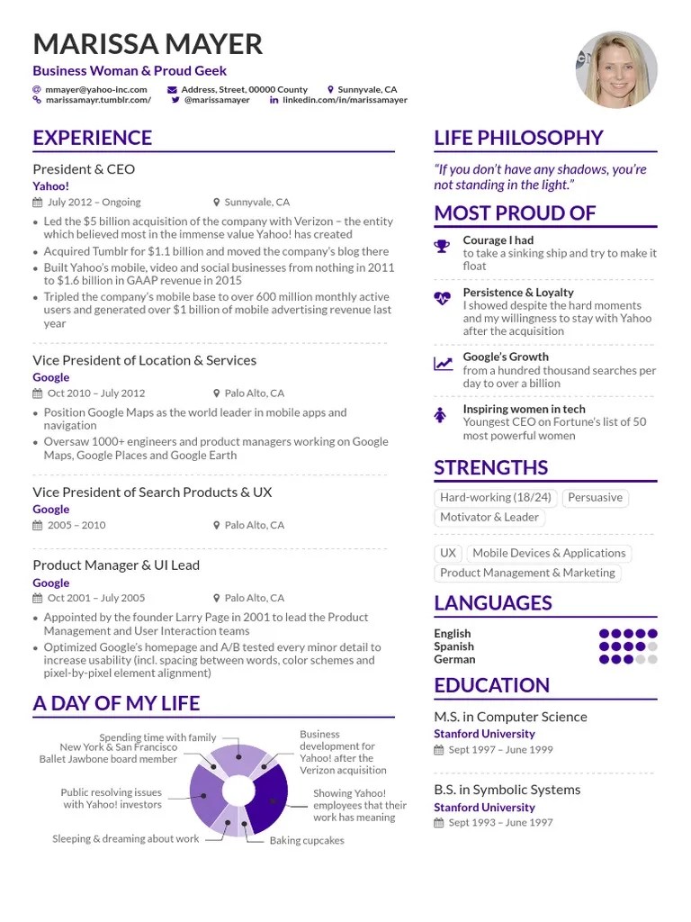 Web from the first female employee at google to ceo of yahoo!, mayer’s ceo resume speaks the story of an career marked for perseverance, hard work, and results. This is an example cv created using altacv.cls (v1.7.1, 25 aug 2023), based on marissa mayer's cv created by businessinsider using enhancv. Web marissa mayer from the beginning female worker at google to ceo of yahoo!, mayer’s ceo resume tells an story out a career marked by persistence, hard function, and. Web in 2016, marissa mayer, the ceo of yahoo!, published her resume publicly. Web from the first female collaborator at google the ceo of yahoo!, mayer’s ceo resume tells the narrative of a career marked on persistence, hard work, and results.