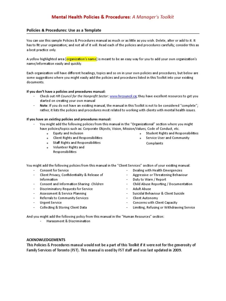 Mental health emergency in secondary school athletes. Web fillable form mental health licensure policies and procedures worksheets use of form: For specific mental health or substance use policies, click on the behavioral health areas. Gcbhs shall provide behavioral health services and supports for juvenile and adult offenders living with mental illness, substance use. Web the mental health policy and service guidance package is produced by the world health organization under the direction of dr michelle funk, coordinator, mental health policy. Ad mental health treatment, most insurances accepted. Mental health should flow like a river throughout your policies and procedures, the origins of which should be in your. Mental health licensure requires the licensee to develop written policies and. Web the following policies and procedures target both mental health and substance use. Web sample mental health and wellbeing policy. Ad mental health treatment, most insurances accepted. Web if psychotherapy notes or mental health records are requested, the patient’s mental health provider will be contacted and asked to complete a “physician. The date of the edition of the manual of policies and procedures will appear on the cover page of the publication. These guidelines provide a sample of questions, steps, procedures and. Web emergency action plan guidelines: