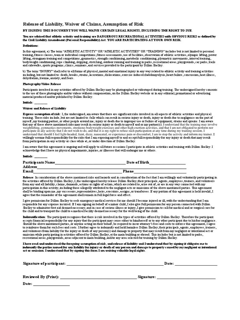 Create, save, & sign a sports waiver in mins. Liability waiver forms are often used when a person signs up for any potentially risky activity. Web how to get your personal training waiver online. Web a personal training waiver form or release form means that your client gives up the option of suing you if they get injured during training activities. Despite autochthonous best intentions how a trainer some clients may become injured during exercise underscoring the importance of having one strong liability waiver.