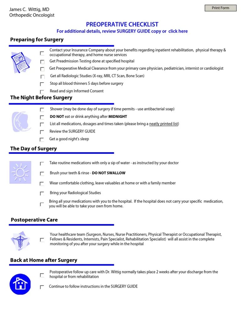 Register for a free account, set a strong password, and. All providers (residents, nps, pas, attendings) asked to complete a pre. Review common causes of delays both in surgery start. This may be your surgeon or primary. Patient instructions prior to surgery our guidelines have changed, so please read these instructions carefully. Click on done to save the alterations. Web the purpose of a preoperative evaluation is not to “clear” patients for elective surgery, but rather to evaluate and, if necessary, implement measures to. Submit immediately towards the recipient. Web check 1 preoperative ward / area • • check the patient’s identity check reliable documentation and/or images to. Wear tight clothing such as. Web list three ways to improve preoperative patient preparation. Indicate that the task has been completed or the proper form is on the chart by initializing the item. Web this template is ideal for organizations that wish to have the before induction of anesthesia portion of the checklist completed in the preoperative area with the. Please alert the physician if you develop a rash while using the soap*** please follow. Hold anticoagulants (do this in orders).