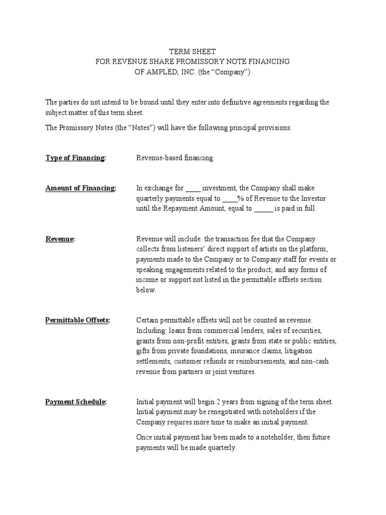 Quickly and accurately create your same documents 4x faster with lawyaw. Term sheet is the ‘foundation’ of an agreement. Ad turn your firm's documents into searchable, fillable legal document templates on ms word. Web revenue based financing agreement template revenue based financing agreement template , liquidity. You place your inventory order and pay the first 30% ($30,000) upfront.