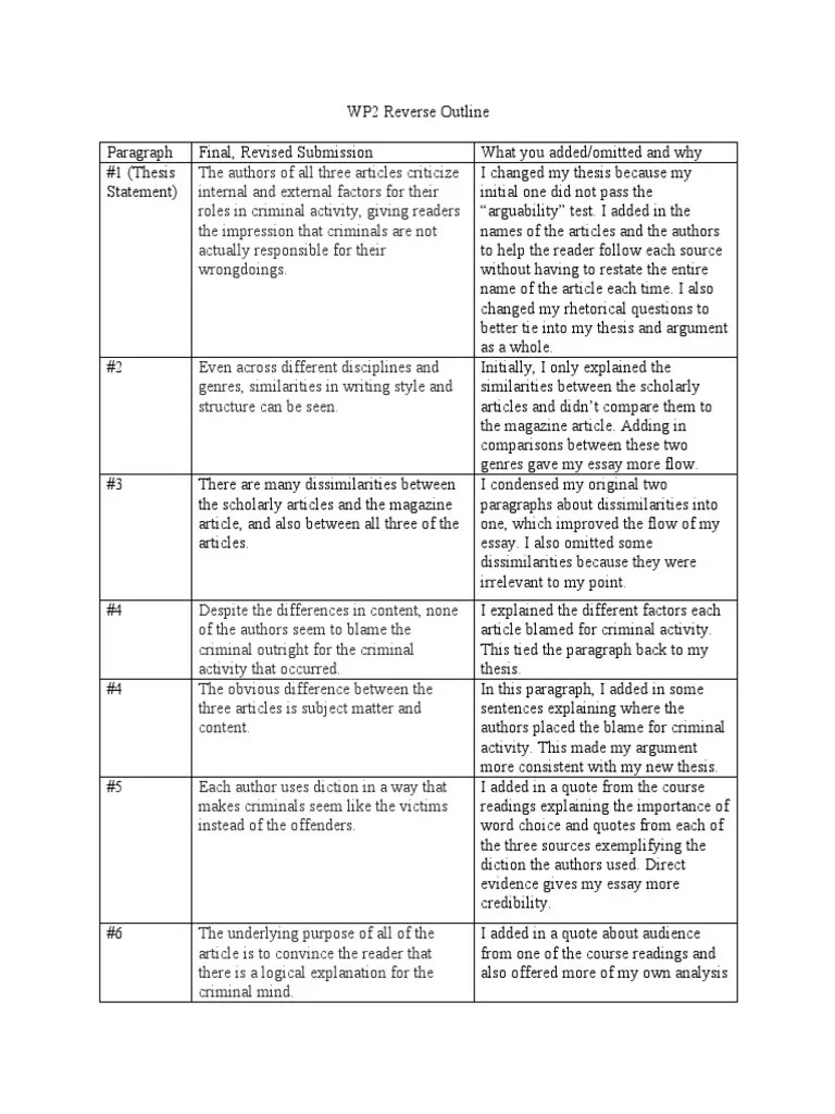 Reverse outlining is exactly what it sounds like: Seeing the parts of the paper organized into a bulleted list can. And i’ve also created a brief example using the early scenes of my book,. Reverse outlining, which you do after you’ve written a draft, allows you to check your structure. Readers use reverse outlines to understand and evaluate a text. Web how to do a reverse outline. Web if you wonder how to do a reverse outline, learn the seven simple steps to create one. An exercise for taking notes and revising your work. Web a reverse outline can help you see your draft from a new perspective by focusing only on the main points and moves of each paragraph. Try masterwriter risk free for 90 days. Then, check out the examples and a template. Through this process, you can identify problems with your claims, the structure of your paper, and the organization of. Web reverse outlining is simply making an outline after an essay has been written. Web the purpose of a reverse outline is to help you understand the structure of the paper you've already written. Many people think of outlining as a first step in the writing process, but it can also be.
