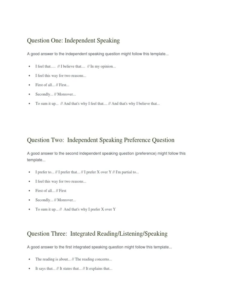 Web download a document with three speaking practice questions for the toefl ibt® test, covering independent and integrated speaking tasks. Here are my toefl speaking templates for 2021. It is organised according to the 6 kinds of questions asked in speaking paper. By ielts and toefl with juva. Pass your toefl test with our practice tests, study guides, courses & videos.