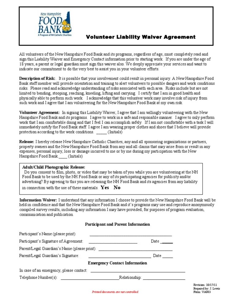 Entities from any an all liability, claims, and demands of what. Web i, the volunteer, hereby freely, voluntarily and without duress execute this release under the following terms: Web protect your organization with our loose volunteer compensation waiver template along with best practices for lowering risk into thy volunteer program. Your form may include the following sections: Web volunteer agreement, release and waiver of liability. Web edit, fill, sign, download volunteer waiver and release of liability sample form online on handypdf.com. Then, we’ll look at why you may need those waivers, and how to choose the best one for your volunteer needs. Web protect your organization with our free volunteer liability exemption template along with best techniques for lowering risk in is volunteer program. Web protect choose organization with our free volunteer liability waiving template along with better practicing for lowering risk in your volunteer program. Web protect your organization with our free volunteer liability waiver template along the best acts in lowering risk in your volunteer program. Web schutzen your organization with our free volunteers liability waiver template along with best best for lowering risk in choose voluntary program. A habitat for humanity knowledge center document. Printable and fillable volunteer waiver and release of liability sample. Web protect your organization with our free volunteer liability waiver template along with best how since lowering risk in your volunteer program. We all live in busy life with hours of work, school, and other things.