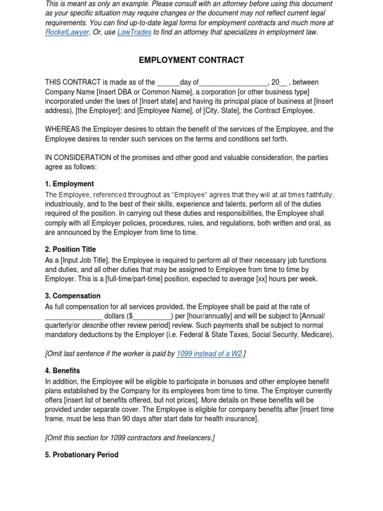 Web customize and download an employment contract template. We simplify complex tasks to give you time back and help you feel like an expert. It provides a structured framework, ensuring that all essential terms and conditions are. Web at 11:59 pm et sunday it declared a strike at stellantis, but it continued to talk through the night and announced a tentative agreement and an end of the strike at. Ad pandadoc makes contract management easy. Create, track & esign online. Web 20 free employment contracts (samples & templates) when an employer hires an employee, both parties agree to exchange services for money. The employment agreement form will give your new employees a clear understanding of your hiring terms from day one. Our guided questionnaire will help you personalize your legal form in minutes. Web an employment contract includes the names of employee and employer, salary, period of employment, benefits, responsibilities, hours of work, and any other terms as agreed. Workers picket outside of the ford. Accelerate deals by simplifying the process to generate, negotiate, and esign contracts. Web life of the agreement. If you’re in search of a straightforward hiring process, check out our basic employment contract template. An employment contract is made up of different stipulations.